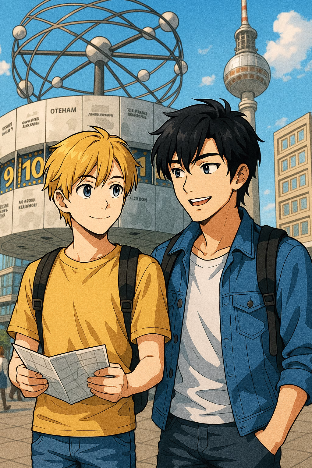 Die Weltzeituhr drehte sich wie immer über den Köpfen der Menschen. Hunderte Gesichter, Stimmen, Leben – und mittendrin standen sie plötzlich wieder voreinander. Keine Musik. Kein Radio. Kein Bildschirm. Nur echte Augen und ein echtes Lächeln.