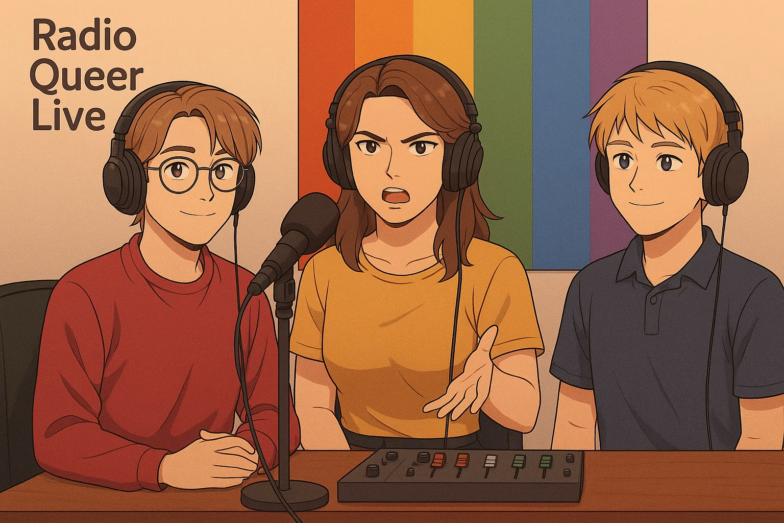 Sonntagabend, kurz nach 18 Uhr. Radio QueerLive unterbricht sein reguläres Programm. Frau Bond steht am Mikro, Jakob neben ihr. Die Stimmung ist angespannt. Es gibt Neuigkeiten – erschütternde. Jakob zittern die Hände.