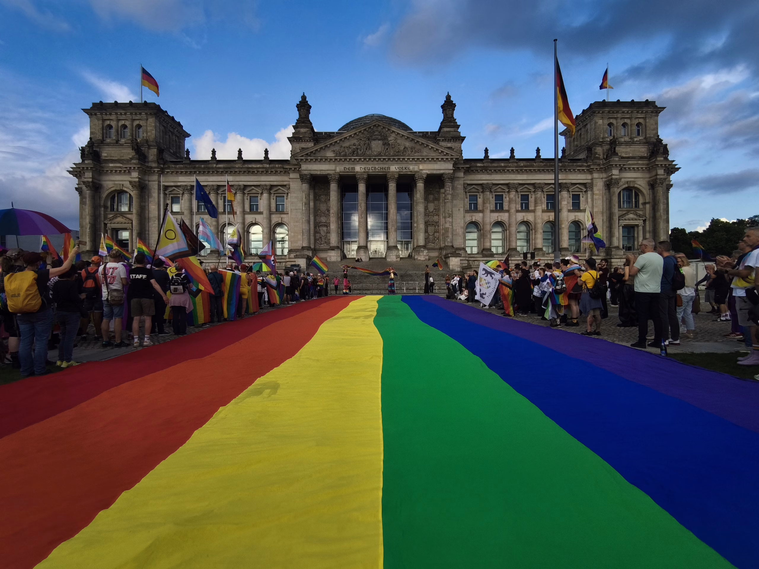 Weil Bundestagspräsidentin Julia Klöckner in diesem Jahr keine Regenbogenflagge am Reichstagsgebäude hissen wollte, nahm die Community das selbst in die Hand.