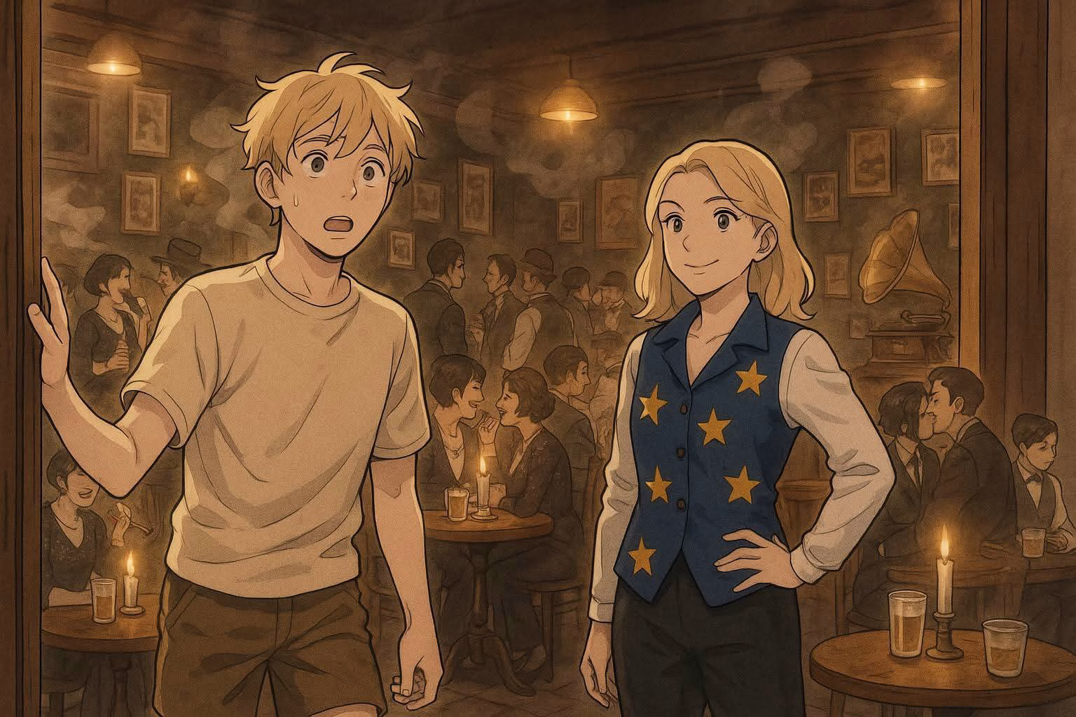 Ein niedriger Raum, dunkle Holzvertäfelung, ein altes Grammophon auf der Theke, aus dem ein kratziger Walzer erklang. Männer in dunklen Anzügen, Frauen in Hosenanzügen mit kurzen Haaren oder in Glitzerkleidern. Gelächter, Gläserklirren, leises Flüstern in den Ecken.