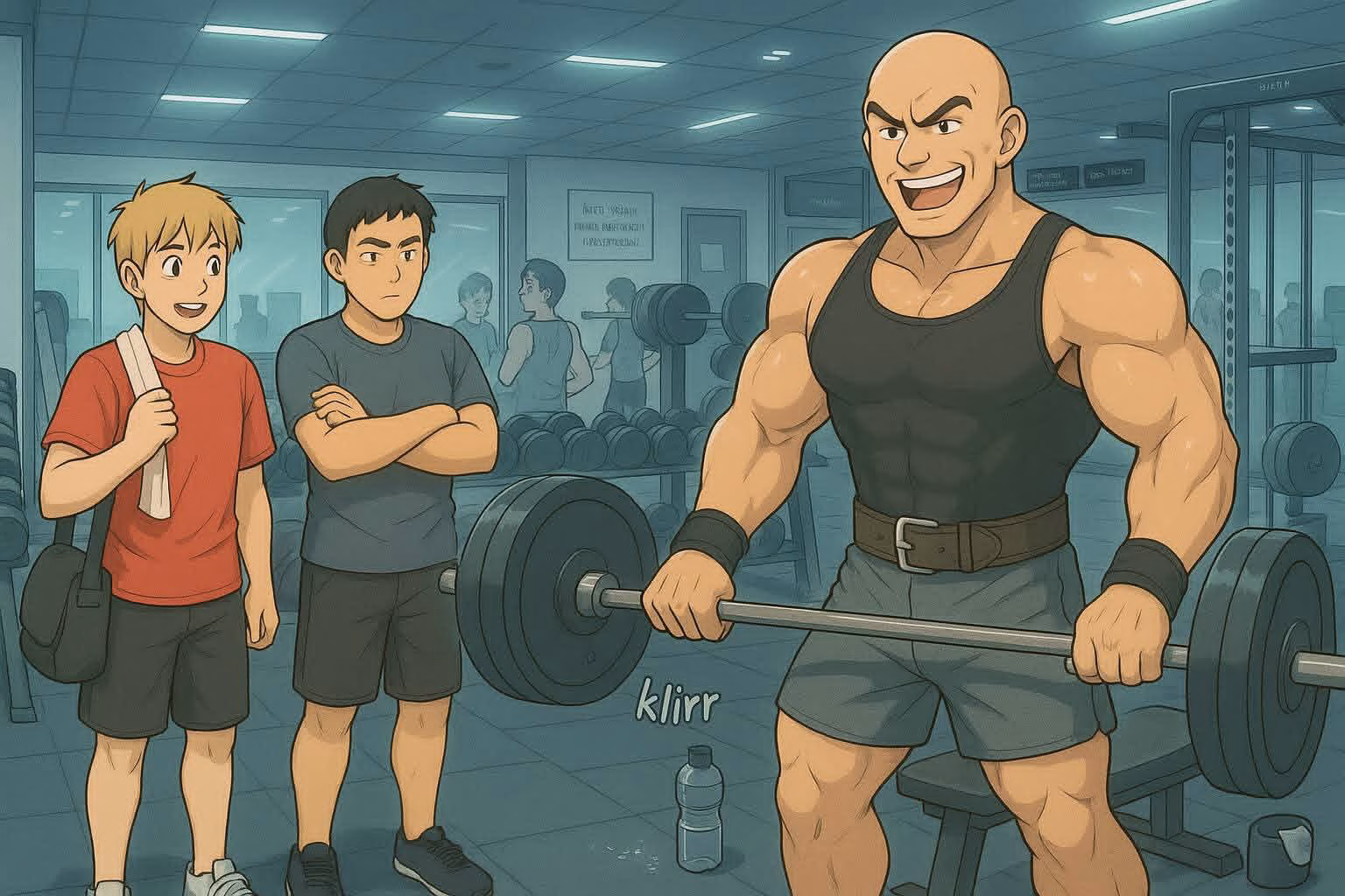 Am Nachmittag betraten sie das Fitnessstudio. Überall glänzende Geräte, Hanteln, Spiegel, und Typen, die aussahen, als hätten sie ihr ganzes Leben zwischen Eiweißshakes und Bankdrücken verbracht.